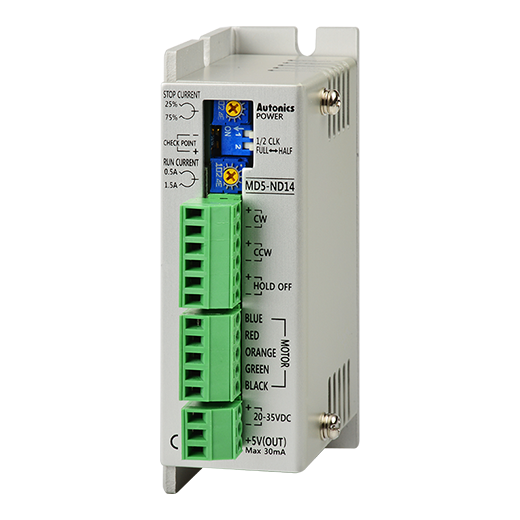 درایورهای استپر موتور 5 فاز سری MD5 آتونیکس قابلیت کنترل بسیار دقیق موتور با نویز مکانیکی و لرزش کم را ارائه می دهد. طراحی ورودی با فتوکوپلر ایزوله تاثیر نویز الکتریکی را حداقل می کند. این سری از موتورها دارای فانکشن هایی مانند کاهش جریان اتوماتیک و عیب یابی خودکار هستند. مدل های دارای درایو میکرواستپ قابلیت چرخش با سرعت کم و کنترل دقیق 250 قسمتی را ارائه می دهند.