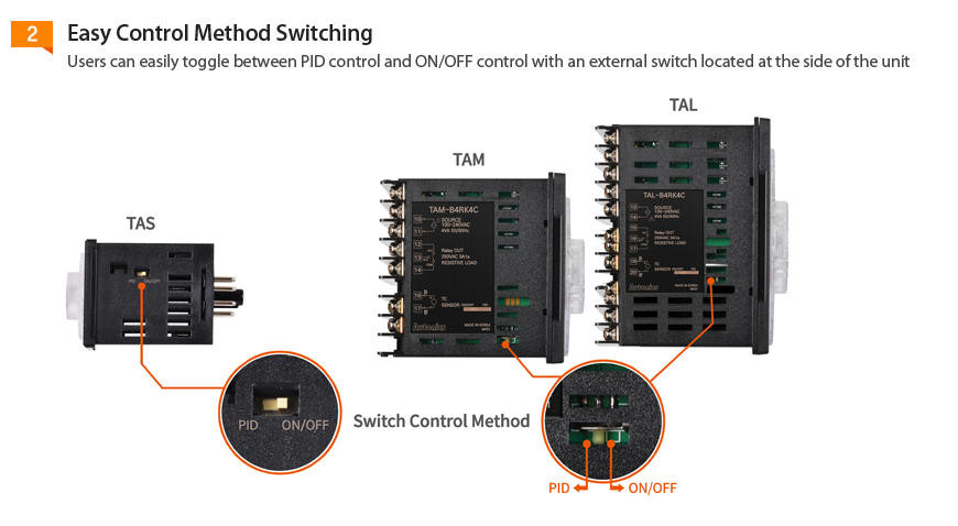 کنترلرهای دمای سری TA کنترل دمای ساده و دقیق را با استفاده واریابل آنالوگ ارائه می دهد. این کنترلر دارای قابلیت اتوتیونینگ PID کنترل دما و کنترل ON/OFF می باشد که با استفاده از سوییچ های خارجی تنظیم می شوند. نشانگر LED انحراف و نشانگر خروجی کنترلی دید کاملی از وضعیت پروسه ارائه می دهند.